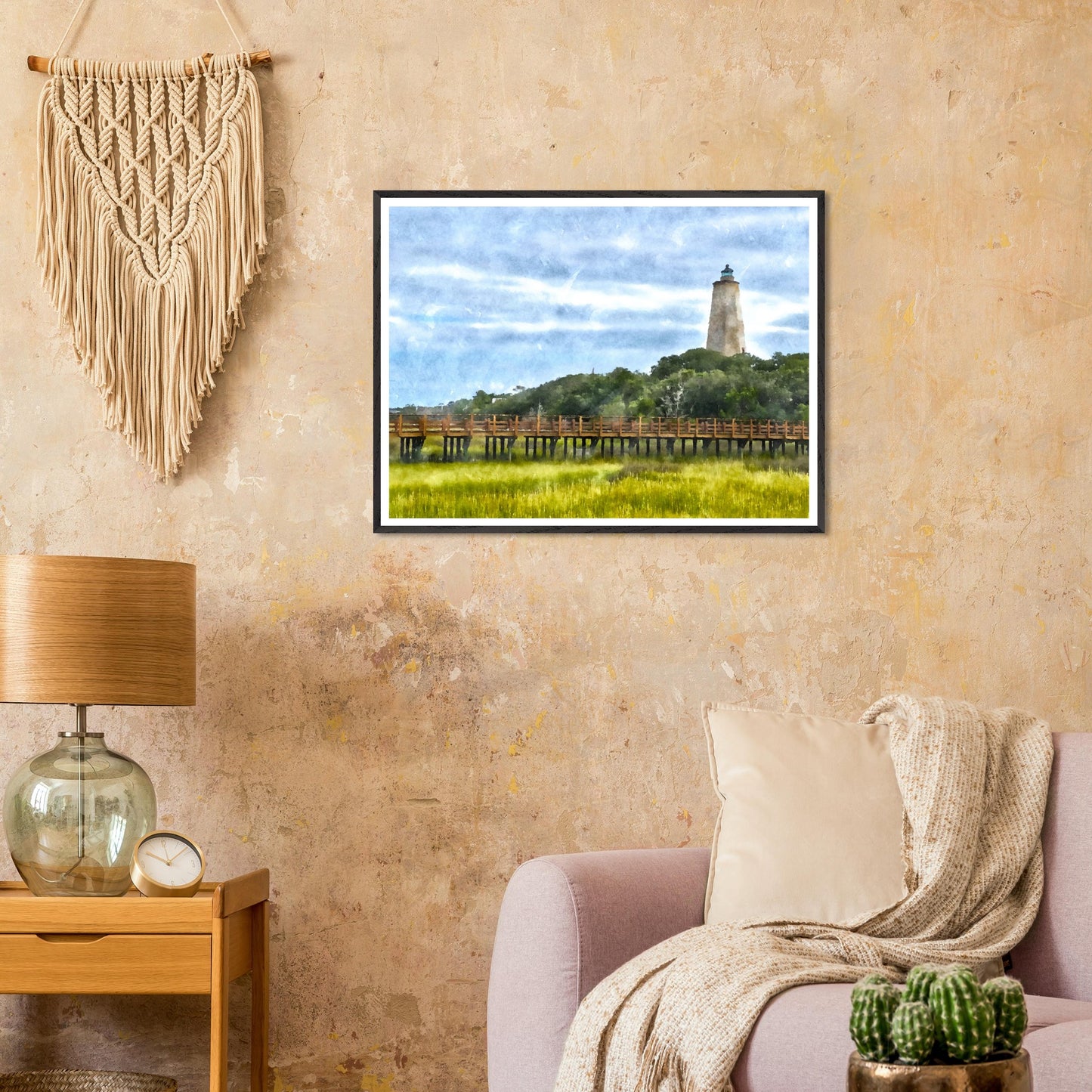 Stunning digital watercolor of Old Baldy on Bald Head Island, North Carolina.